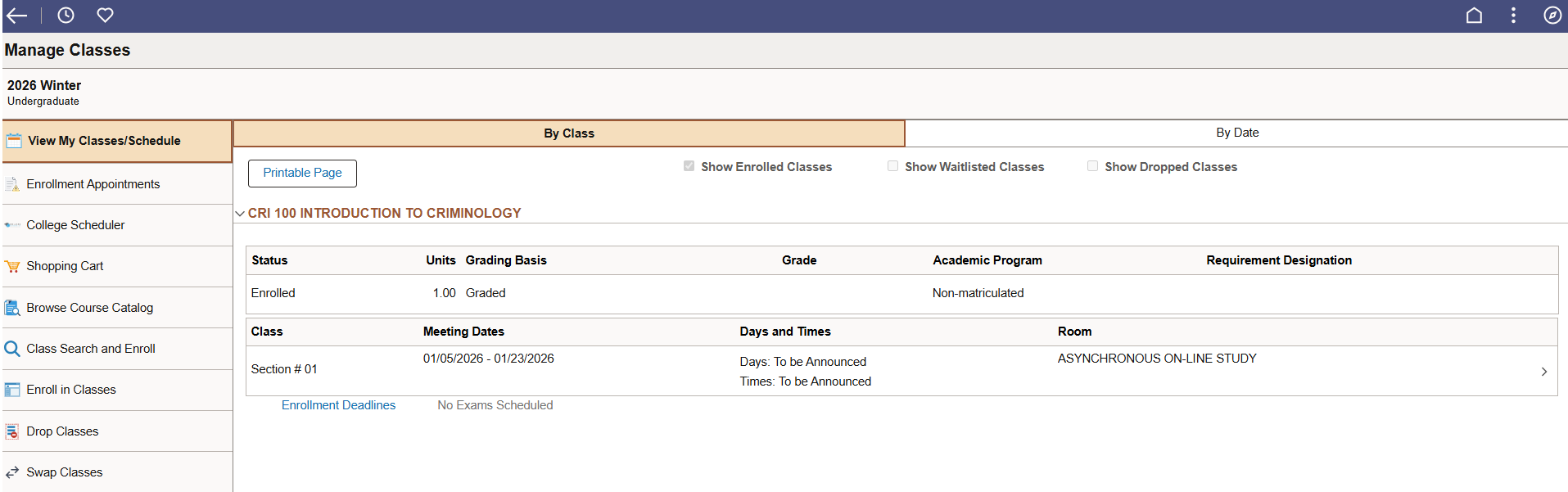 - Continue to use Manage Classes to add/drop/swap classes during the permitted enrollment windows.